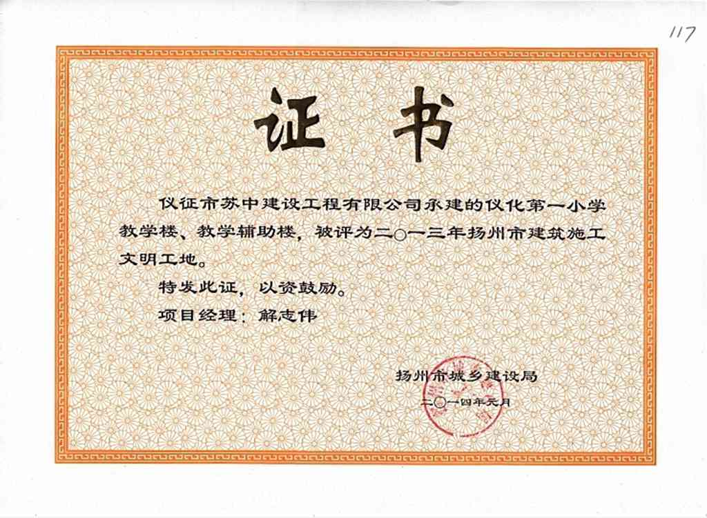 怡人城市花園2016年下半年揚州市建筑施工文明工...
