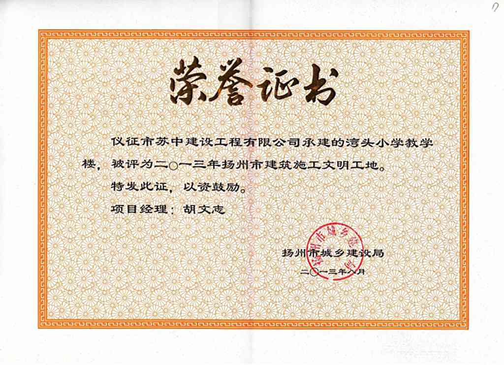 揚(yáng)州市灣頭小學(xué)2013年揚(yáng)州市文明工地