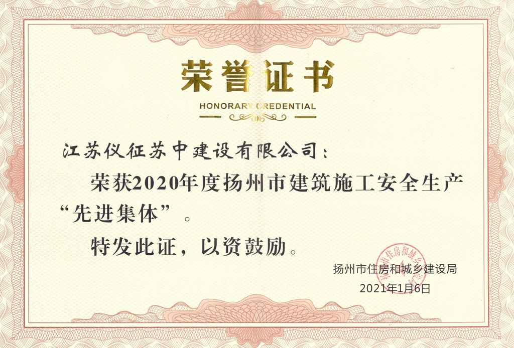 2020年度揚(yáng)州市建筑施工安全生產(chǎn)“先進(jìn)集體”
