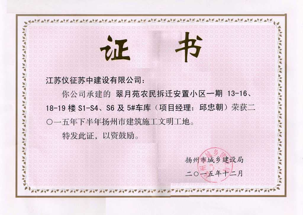 棗林灣2019年度集中居住區(qū)2020年度揚州市文明工地