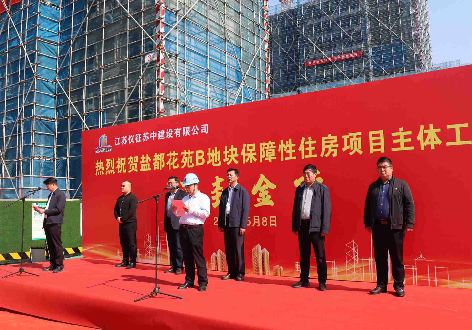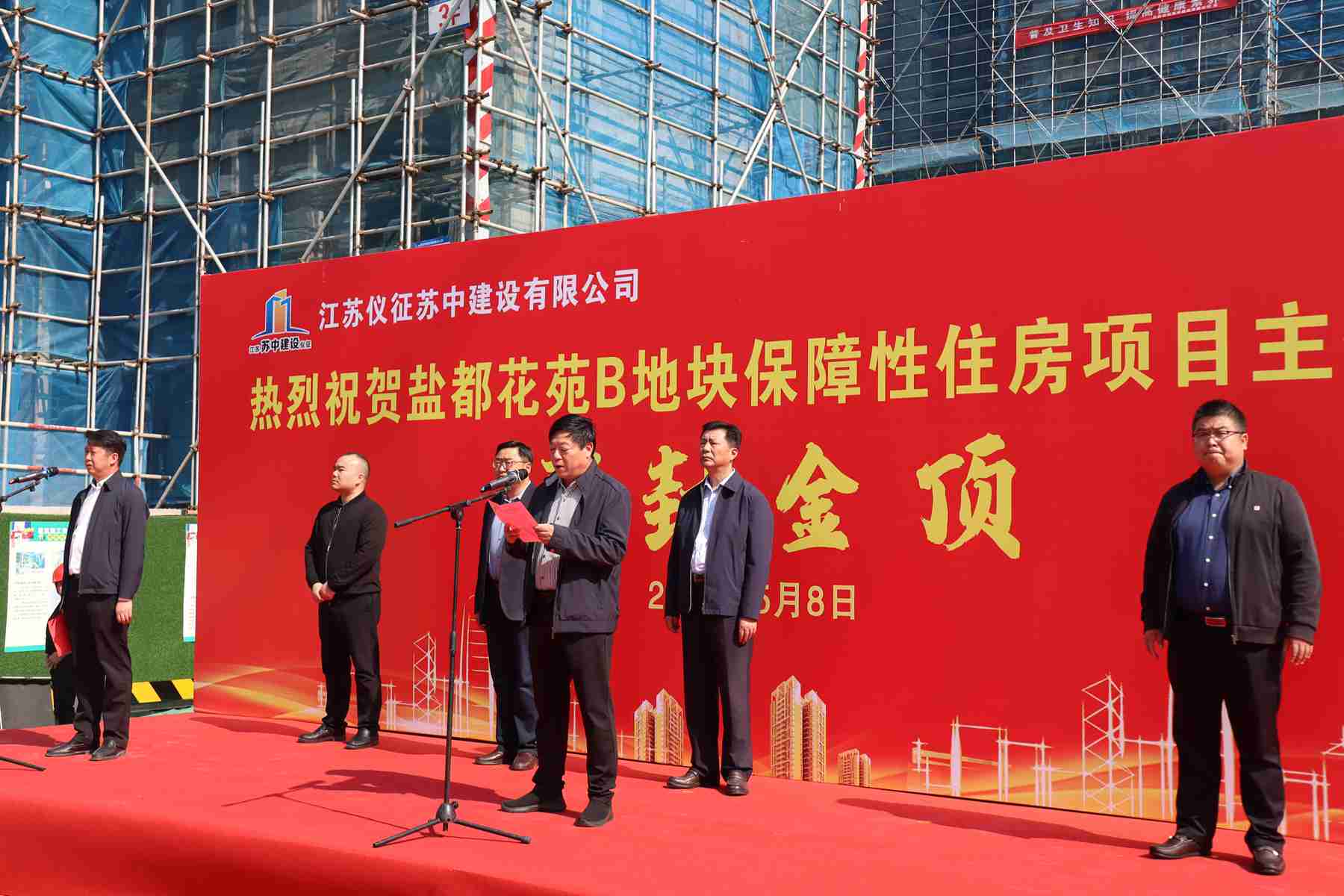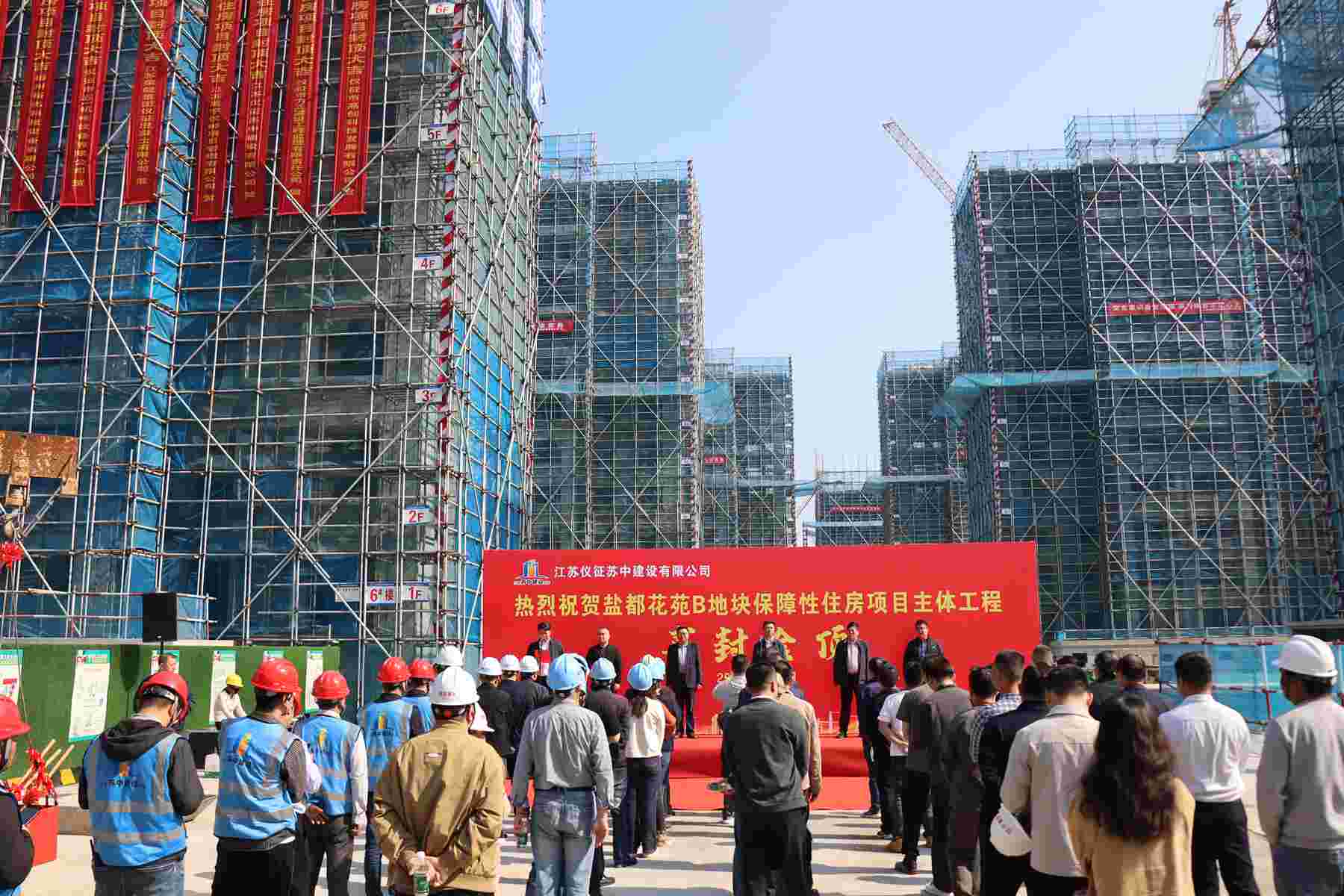 今天上午,在公司承建的鹽都花苑B地塊保障性住房項目現(xiàn)場舉行了隆重的主體工程封頂儀式。