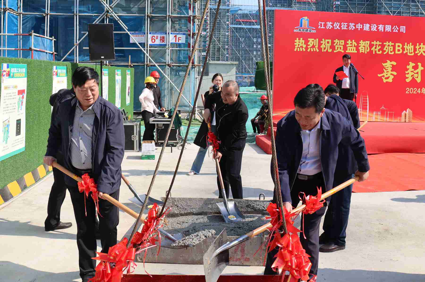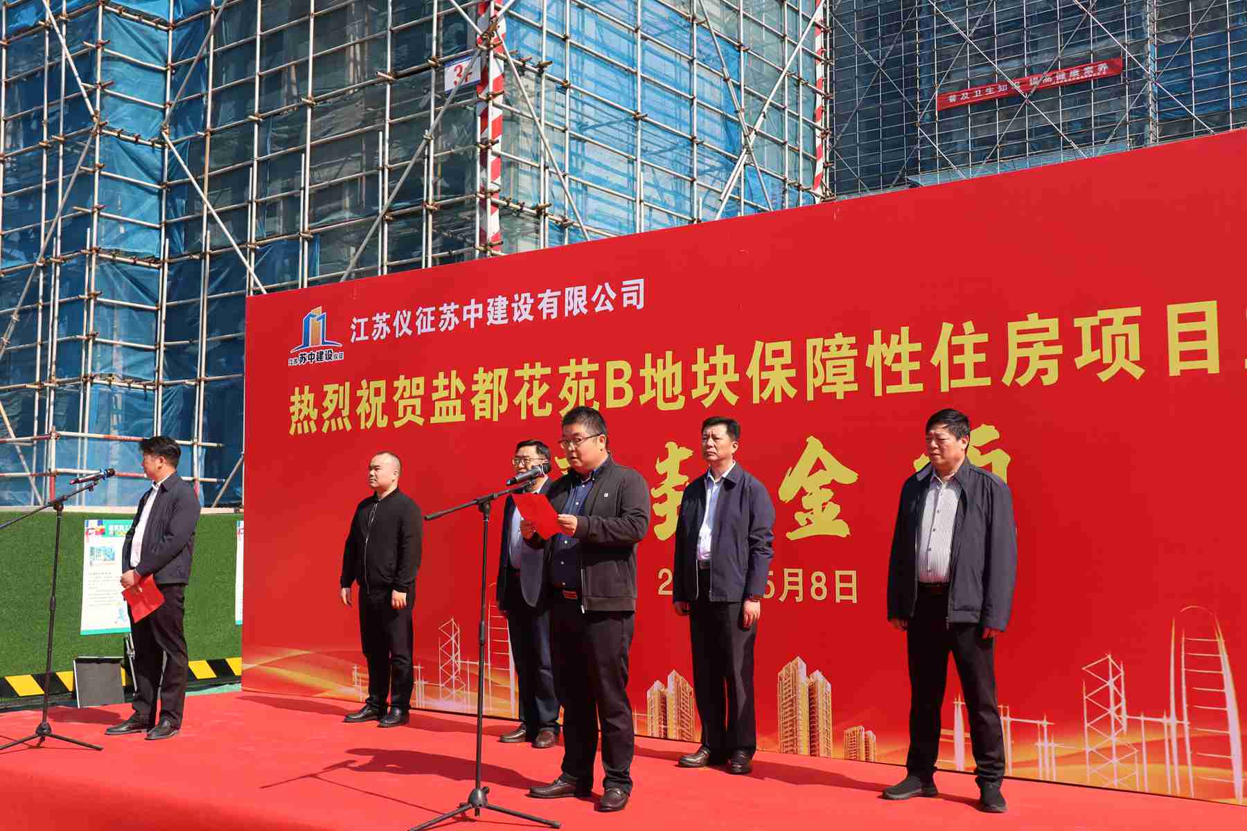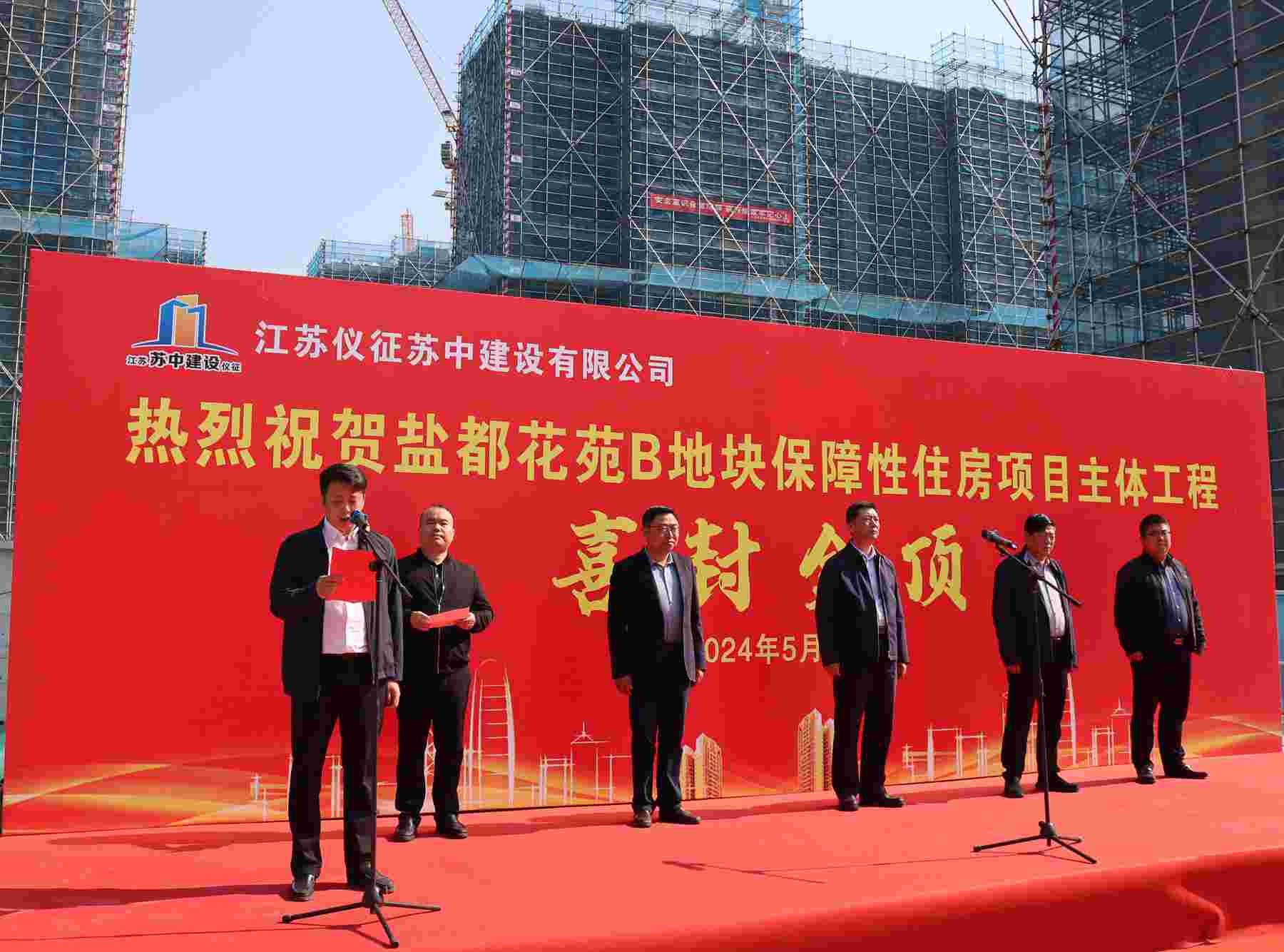 今天上午,在公司承建的鹽都花苑B地塊保障性住房項目現(xiàn)場舉行了隆重的主體工程封頂儀式。
