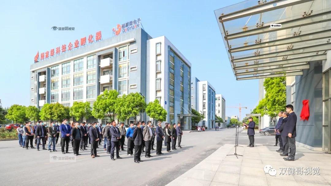 儀征經(jīng)濟開發(fā)區(qū)黨工委副書記、管委會主任劉長榮先生,江蘇儀征蘇中建設(shè)有限公司董事長金玉平先生,共同為開鑾公司揭牌。