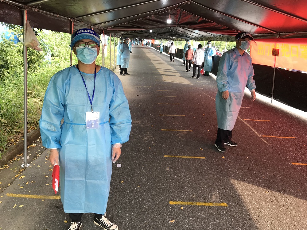 8月18日凌晨,公司接到儀征經(jīng)濟(jì)技術(shù)開發(fā)區(qū)第三輪核酸檢測的緊急通知,迅速召集17名志愿者,于凌晨5點(diǎn)準(zhǔn)時(shí)在榕僑翡翠灣檢測點(diǎn)結(jié)集,助力該社區(qū)第三輪核酸檢測工作。