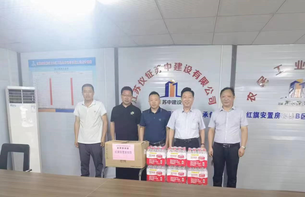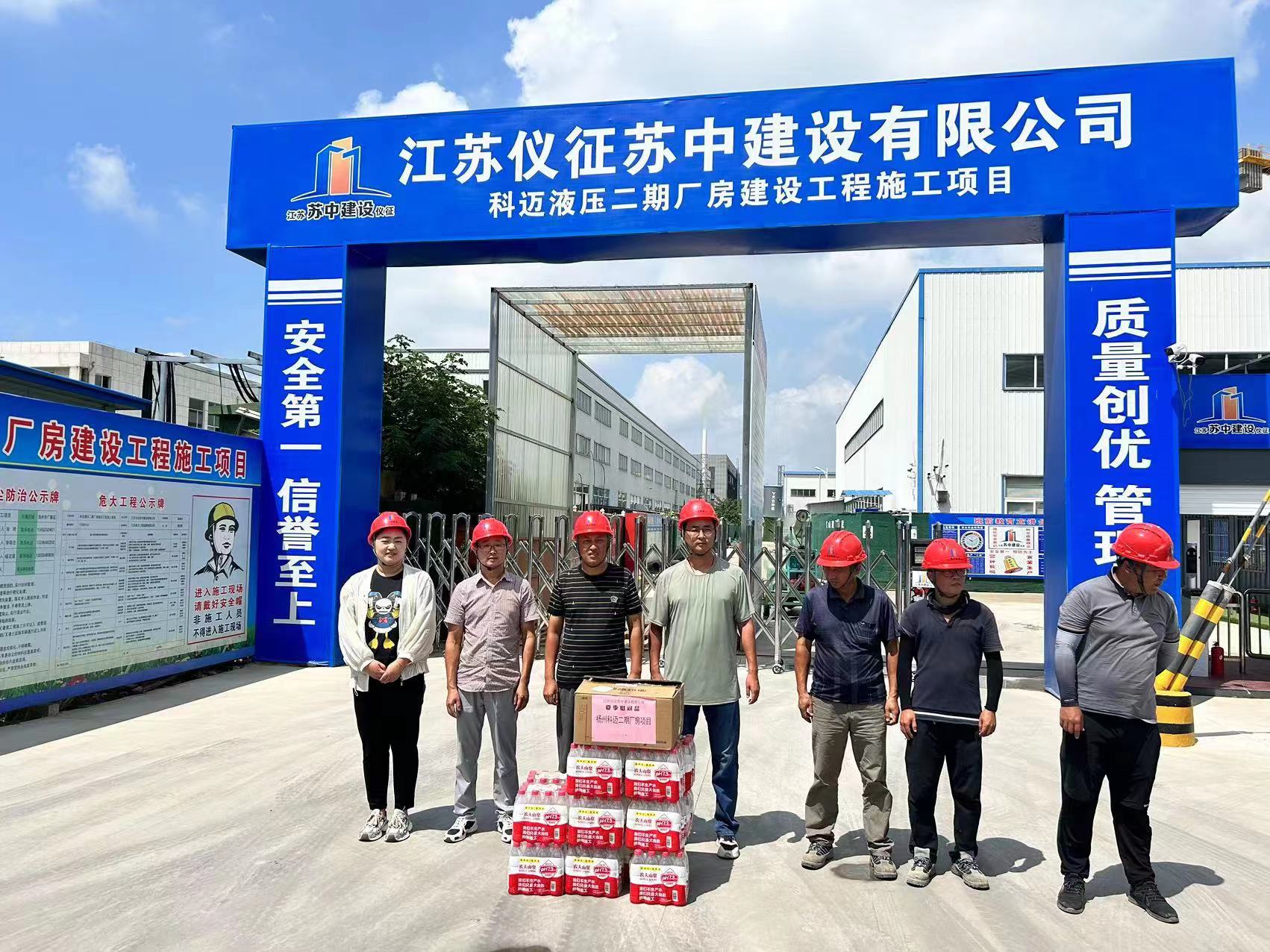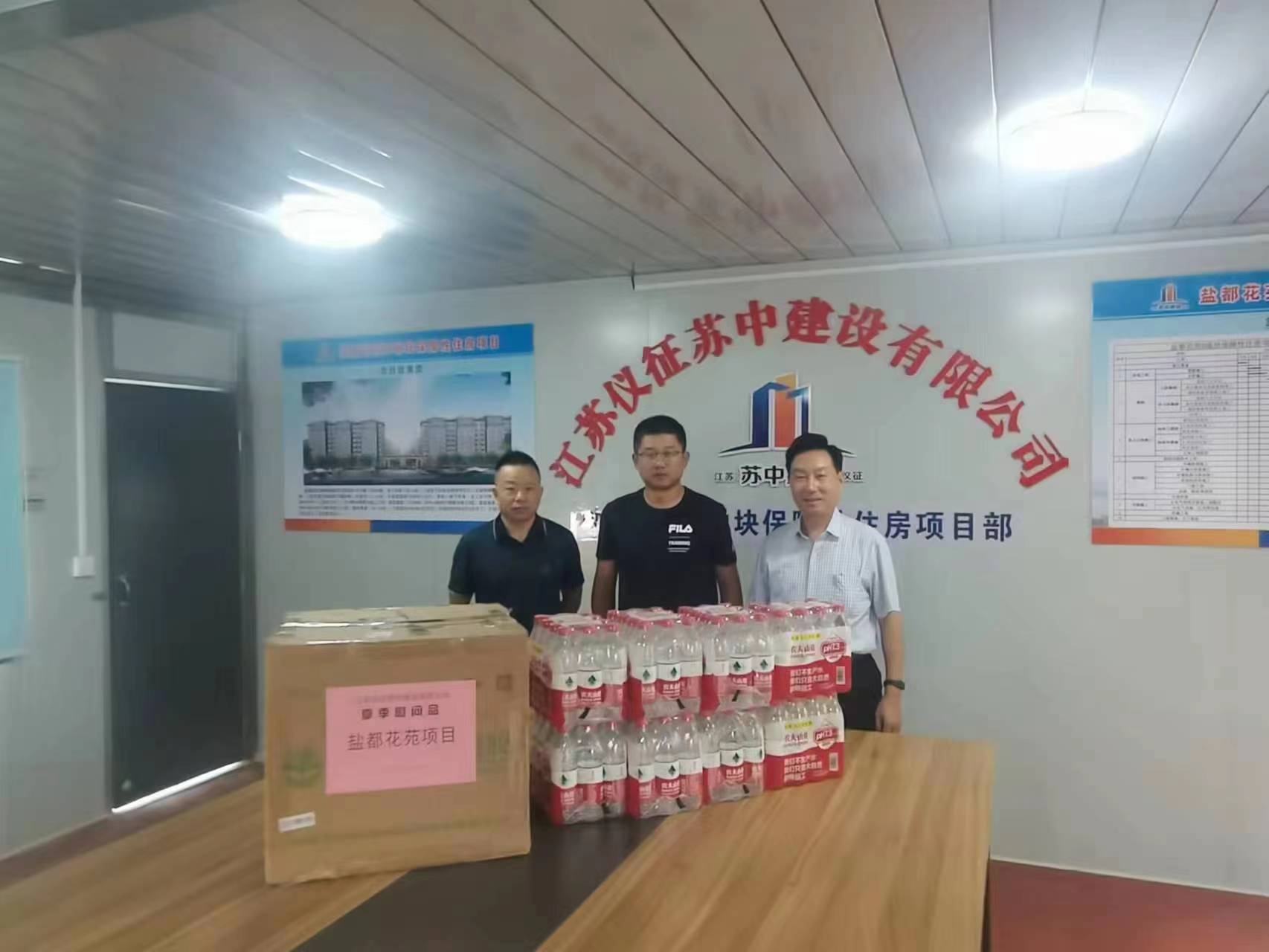 為切實(shí)保障施工一線職工的生命安全和身體健康,傳遞公司領(lǐng)導(dǎo)對(duì)職工的關(guān)心關(guān)愛(ài),營(yíng)造良好和諧的工作氛圍,公司黨支部、安全管理部于2023年8月4日聯(lián)合開(kāi)展“夏季送清涼”慰問(wèn)活動(dòng),先后慰問(wèn)了鹽都花苑B地塊、紅旗花苑B區(qū)、揚(yáng)州GZ313地塊等7個(gè)在建項(xiàng)目。